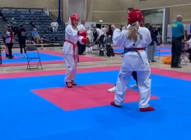 Georgia only entered sparring and in Adult female sparring she was in a very difficult category. Georgia has great sparring skills and does very well at competition however her category contained experienced international competitors and national team members. She did very well in her matches and giving problems to her competitors, but in each match it was clear her fitness level let her down. The level of contact in this category was high, Georgia caused some damage but also took a fair amount.
