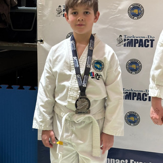 Chayne: Bronze in patterns (very close); Silver in special tech (just imagine with a bit of training); GOLD in sparring (very good sparring, showing how much improvement can occur with extra training)